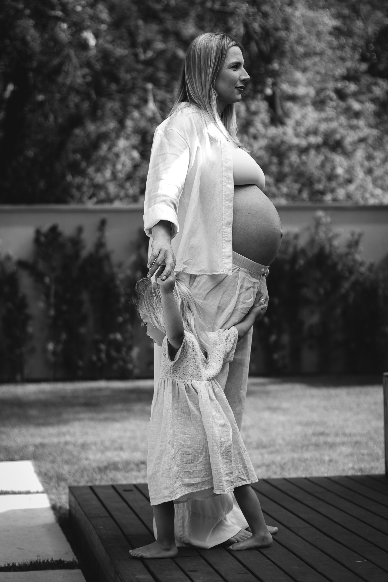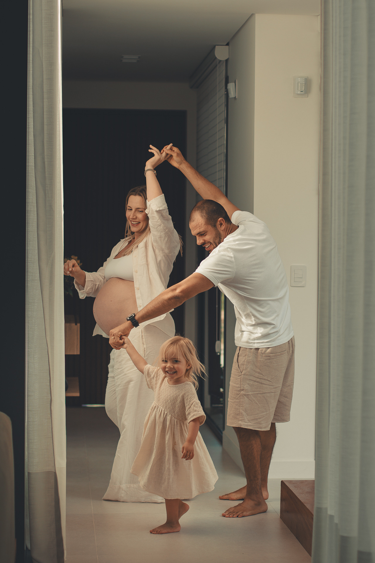 Ela caminhava pela sala, acariciava o ventre, ouvia música, dançava com o companheiro. O resultado? Imagens intensas, delicadas e reais, que revelam o sentimento da espera muito além de uma barriga em evidência.
